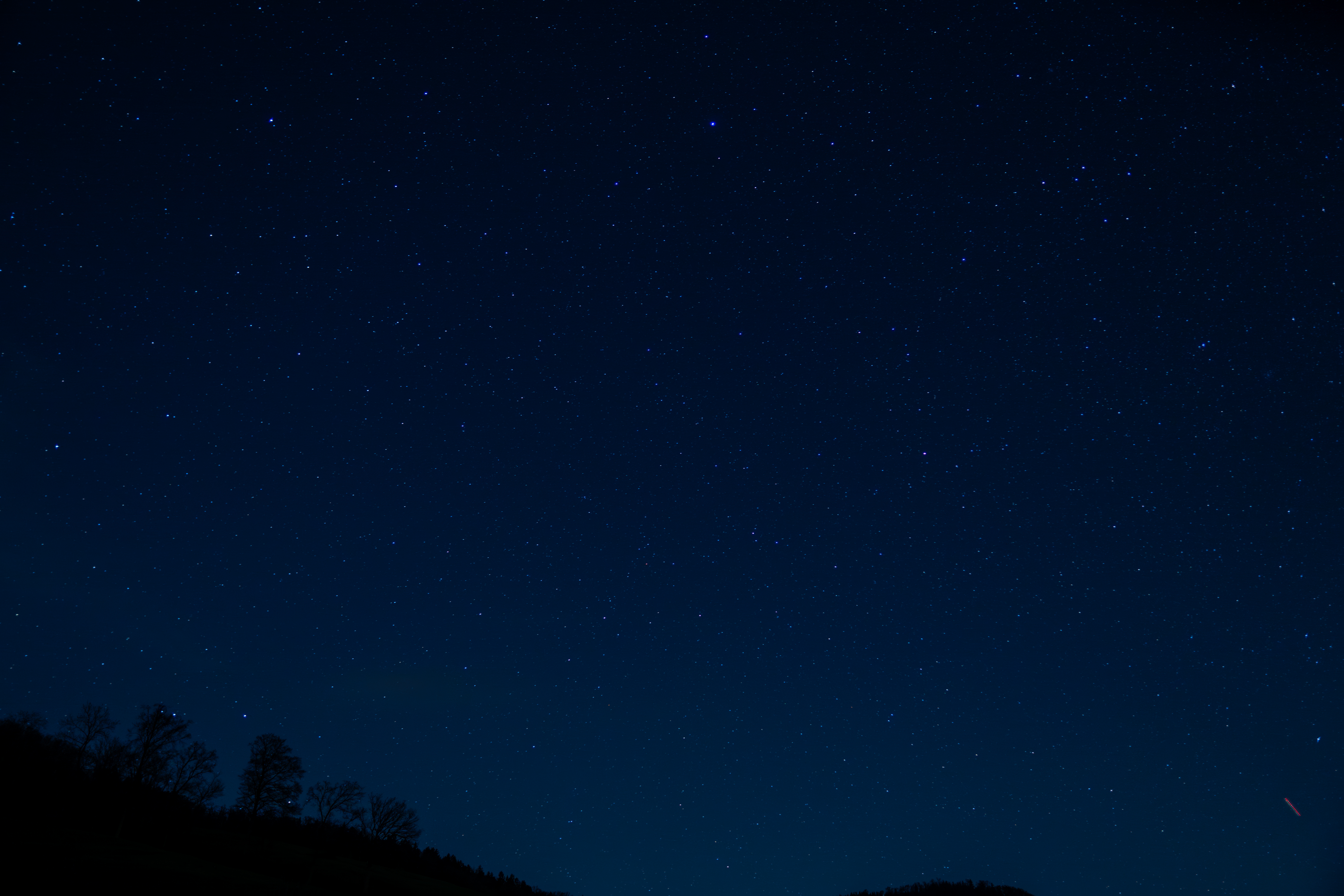 In meinem ersten Versuch habe ich vorallem mit der Belichtungszeit auseinandergesetzt - Mein Kerngedanke war: Niedrigerer ISO = Besseres Bild. Also habe ich alles um den niedrigen ISO-Wert eingestellt. Belichtungszeit von 30s -> 20s -> 15s -> 10s. ISO-200 hat für meine Umgebung dafür gesorgt, dass ich das Bild im Post-Editing künstlich aufhellen musste. Was sehr wahrscheinlich für diese unangenehme Farbtonverschiebung der Sterne gesorgt hat.